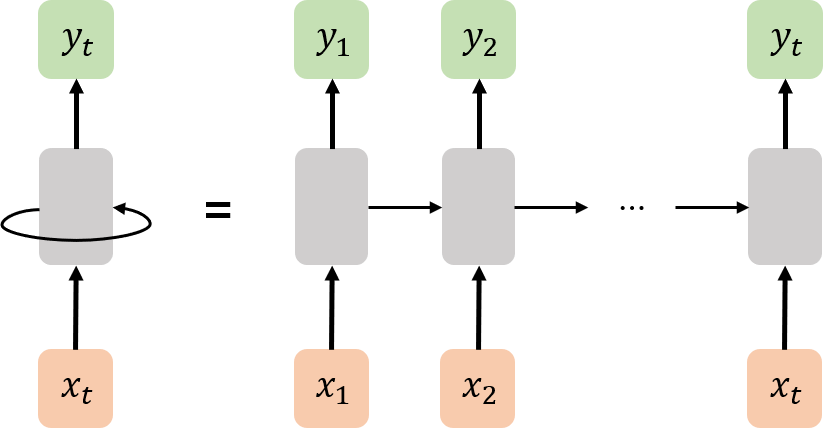 이처럼 RNN은 이전 시점의 학습 결과의 영향력을 받는다.
