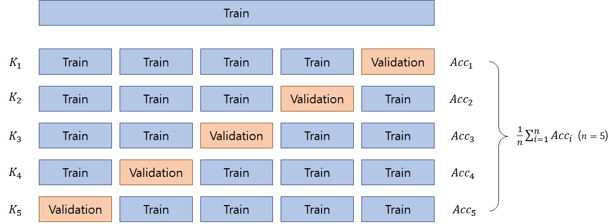 5번의 모델 검증을 수행하고 각각의 정확도를 평가하여 해당 모델의 일반화 성능을 제시할 수 있다.